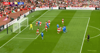 第16分钟,利兹联后场回传错误 ,约克雷斯危险区域 中路无人盯防的情况下伸脚铲射,球打偏了!↓