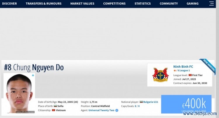 8月8日讯 根据国际足联官网显示,20岁越南裔球员陈成忠正式完成会籍转换,球员所属协会正式从保加利亚足协转至越南足协。