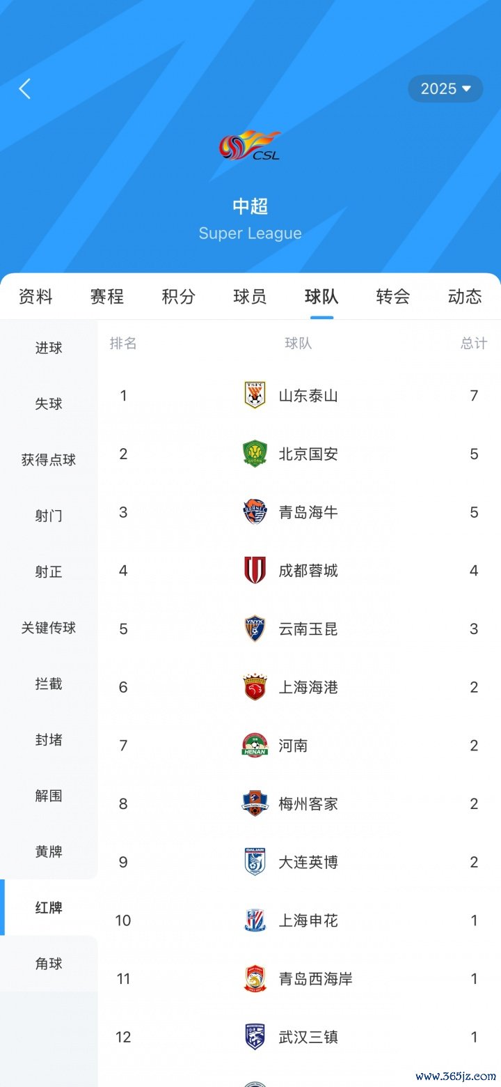 泰山本赛季吃到7张驱逐 中超第1,近5轮吃3张直红&连场有队员直红