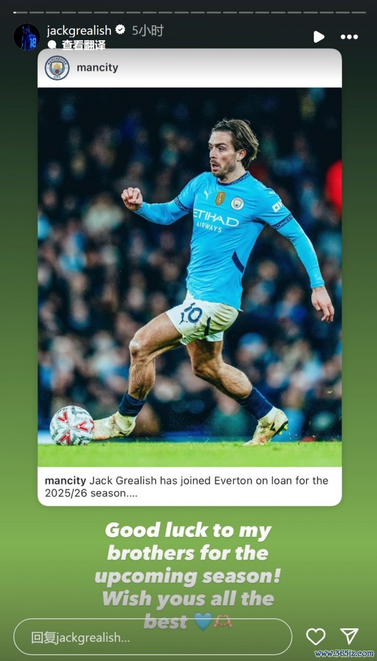 格拉利什社媒转发曼城的官宣动态拜仁9-1皇马,西甲足球直播并配文:“祝我的兄弟们新赛季好运, 排球资讯一切顺利!”