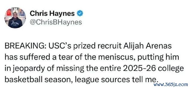 然而命运多舛,车祸没有击垮阿利贾,但在近日却遭遇了半月板撕裂,可能将缺席整个25-26赛季的大学篮球赛 赛事 ,他是南加州大学的大一球员,西甲布朗尼的小学弟。名记Haynes对此表示, 排球资讯预计阿利贾至少休战长达6-8个月。