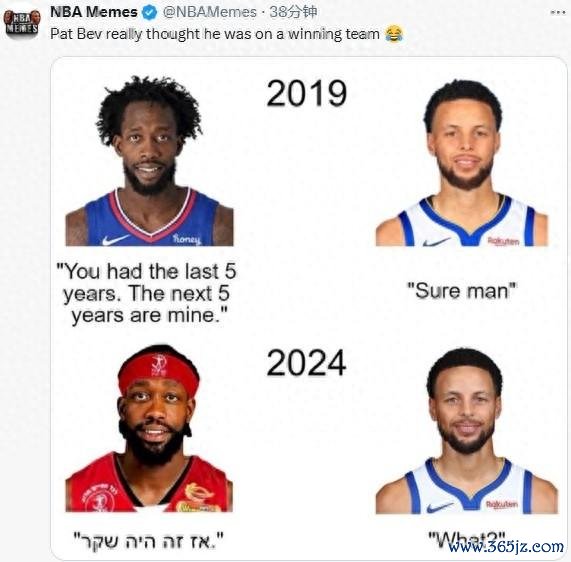 直播吧07月28日讯 近日,媒体NBA Memes在社交媒体上晒出了一张图调侃了前NBA球员帕特里克-贝弗利(如上)。