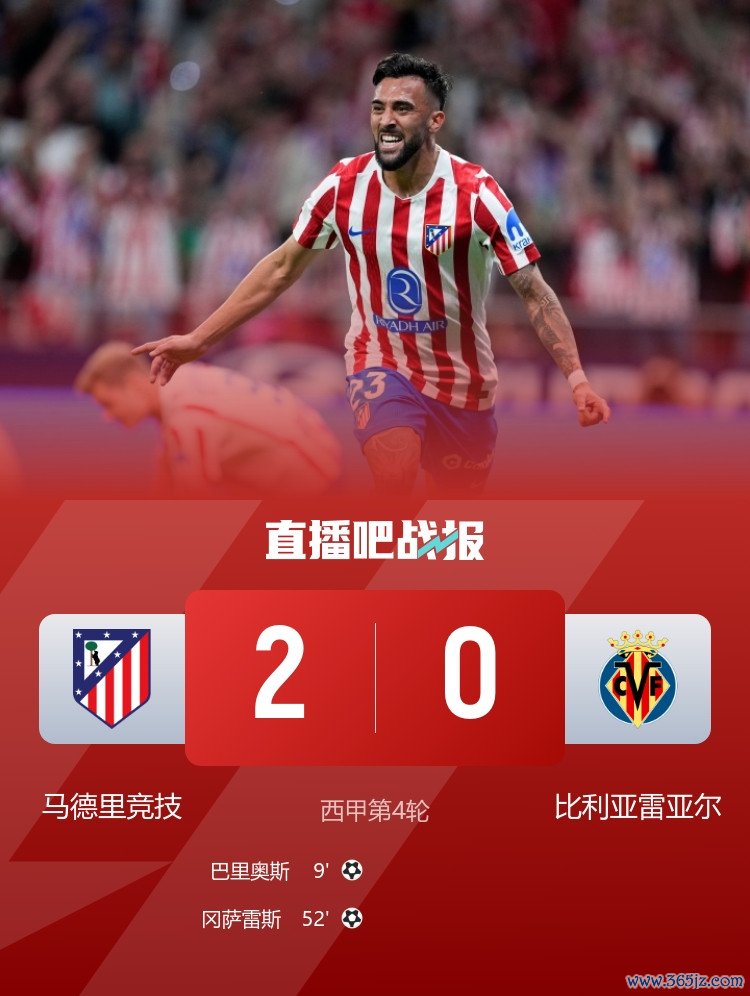 职业联赛 首胜!马竞2-0比利亚雷亚尔巴里奥斯闪击冈萨雷斯首秀破门