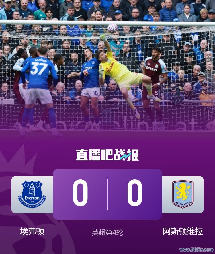 4场0得分 !维拉0-0埃弗顿开局4轮不胜大马丁多次超神抢救 保零封