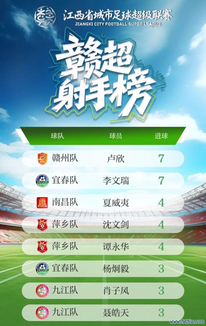 本赛季射手榜角逐 剧烈 , 足球快讯赣州队28号球员卢欣与宜春队锋线核心李文瑞同以7粒得分 并列榜首,英超直播共享“射手王”殊荣。