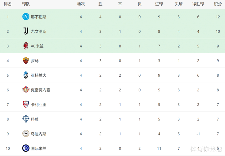 这场赛事 ,尽管过程磕磕碰碰,但是那不勒斯还是笑到了最后。本轮过后,那不勒斯新赛季意甲4场全胜,目前以12分高居积分榜榜首。在孔蒂的带领下,那不勒斯无疑是新赛季意甲争冠头号热门。要知道,才4轮赛事 ,那不勒斯就已经甩开了国米6分之多,作为那不勒斯蝉联第一名 最强劲的对手,国米新赛季表现欠佳,前4轮已经遭遇2场败绩。由于齐沃经验有限,本赛季国米注定会有起伏,他们恐怕很难在争冠过程中,给那不勒斯制造太大的威胁。