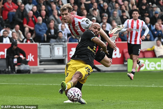 曼联是否会对VAR支持的荒唐判决 表示不满目前还不太清楚,但布伦特福德的内森-柯林斯在对阵曼联的赛事 中,因拖拽布莱恩-姆贝莫(BryanMbeumo)而没有被罚下场。这一判决 得到了VAR的支持。